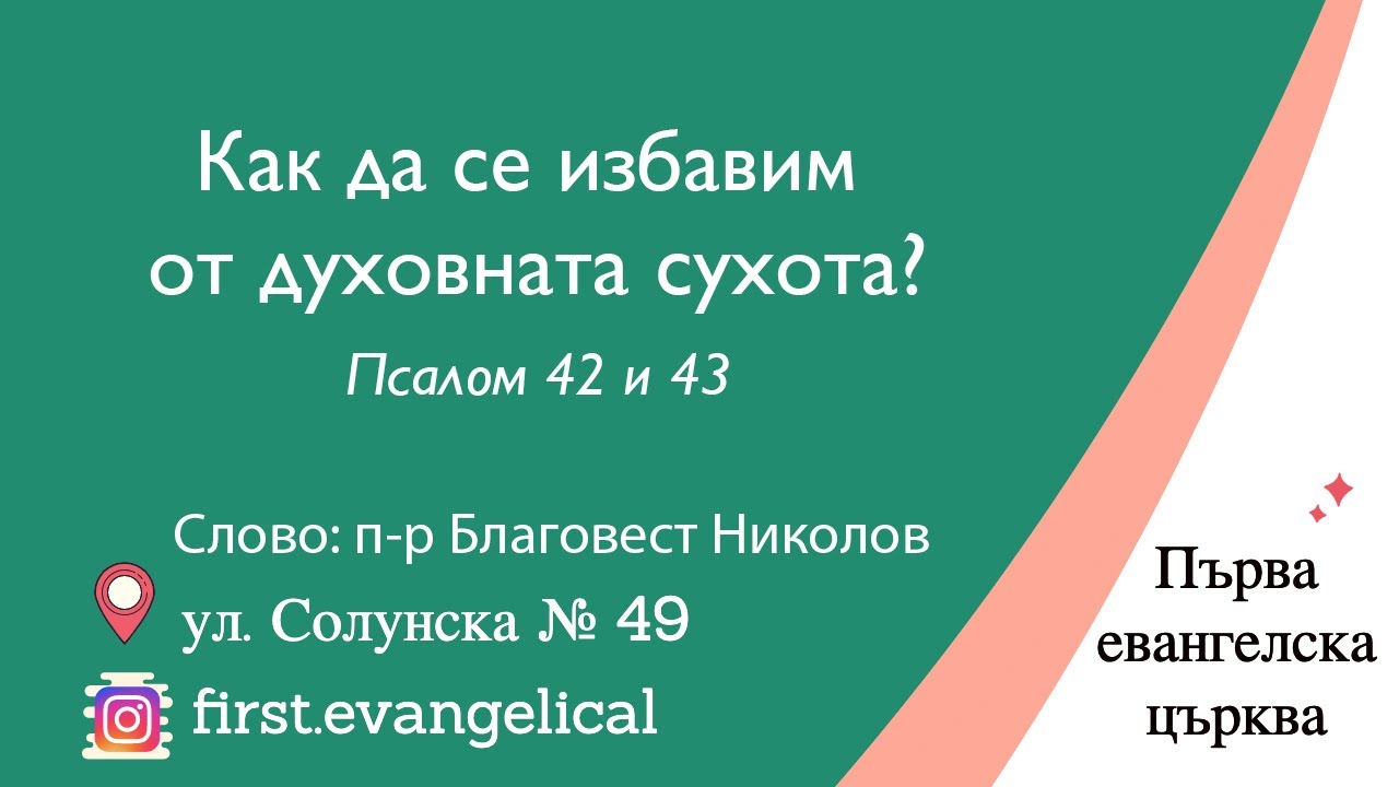 Как да се избавим от духовната сухота? | Псалом 42 и 43 | п-р Благовест Николов | 1.06.2025 г.